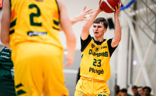 02:38 Plungės Olimpas Tautvydas Baltrušaitis rezultatyviai asistavo 92:82